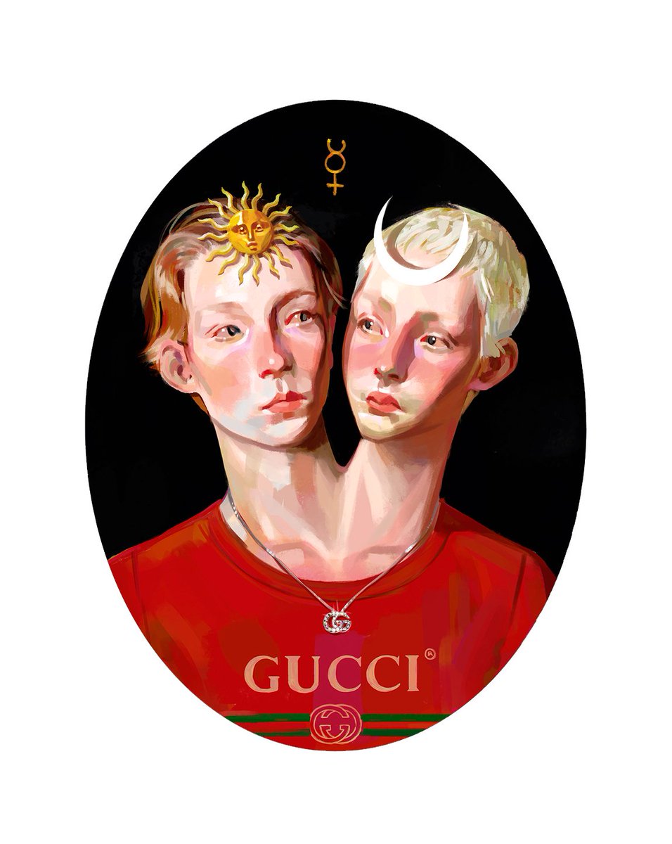Gucci Japan Pa Twitter 男性であり女性でもあるギリシャ神話の神ヘルマプロディートスを思い起こさせるキャラクターが Gucci ヴィンテージロゴ入りのスウェットシャツとダブルg ネックレスを身に着けています Guccigift Ignasimonreal T Co Tiwkdushxy