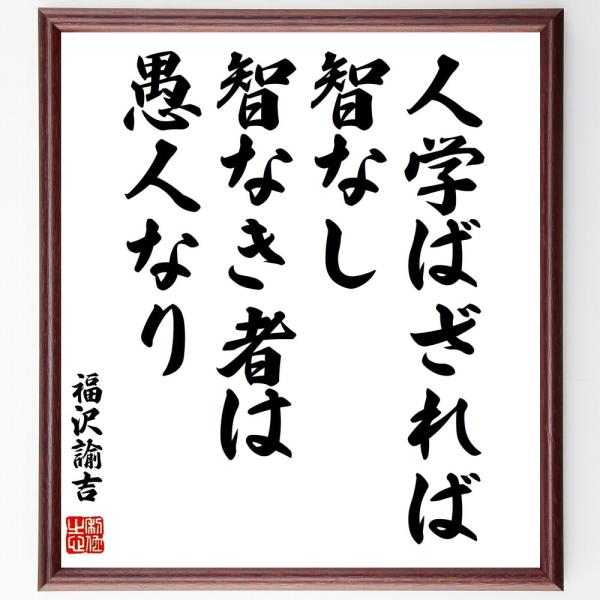 書道色紙 福沢諭吉の名言 人学ばざれば智なし 智なき者は愚人なり 額付き 受注後直筆 Z0726 直筆書道の名言色紙ショップ千言堂 通販 Yahoo ショッピング