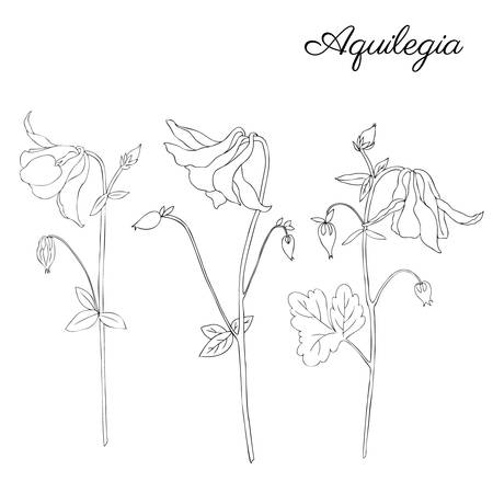 Set Of Vector Hand Drawn Sketch Aquilegia Flowersのイラスト素材